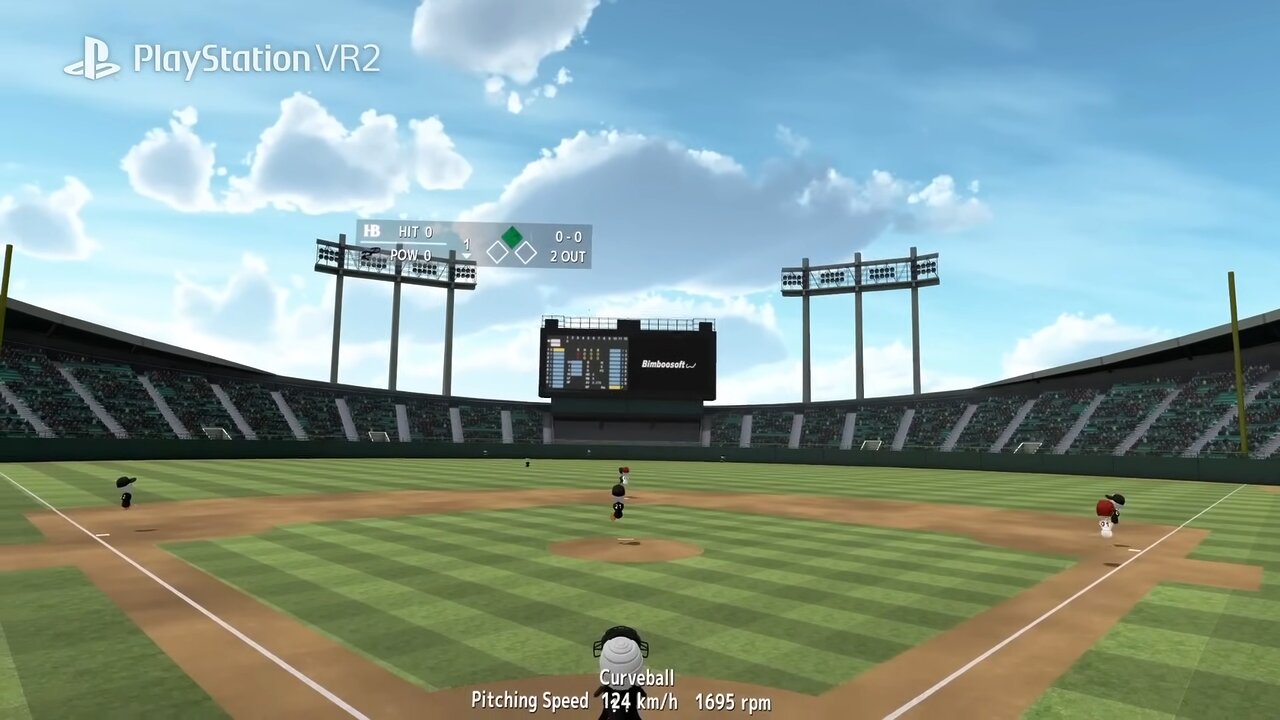 PlayStation VR2 Senseコントローラーにより、現実のようにボールを投げる/打つことを疑似体験できる。
