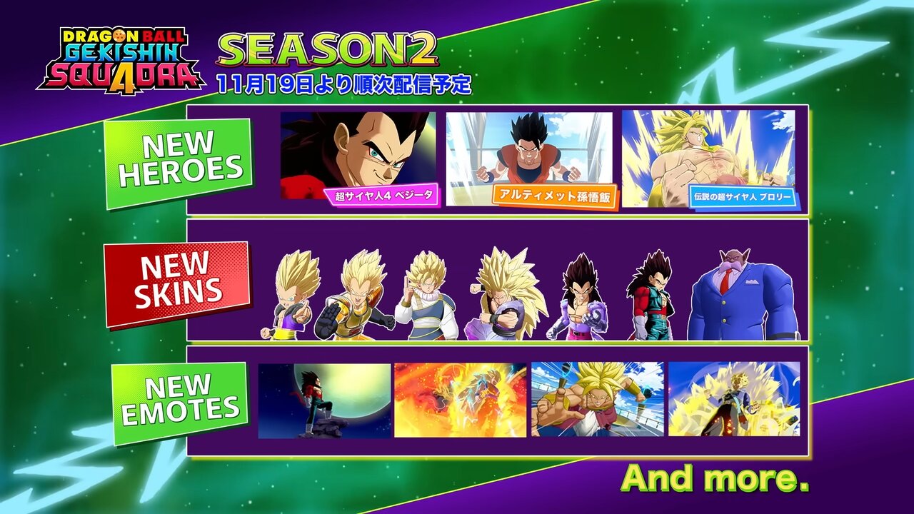 基本プレイ無料の超圧倒チームバトル『ドラゴンボール ゲキシン スクアドラ』にて、11月19日から開始されるシーズン2の情報が公開されました。