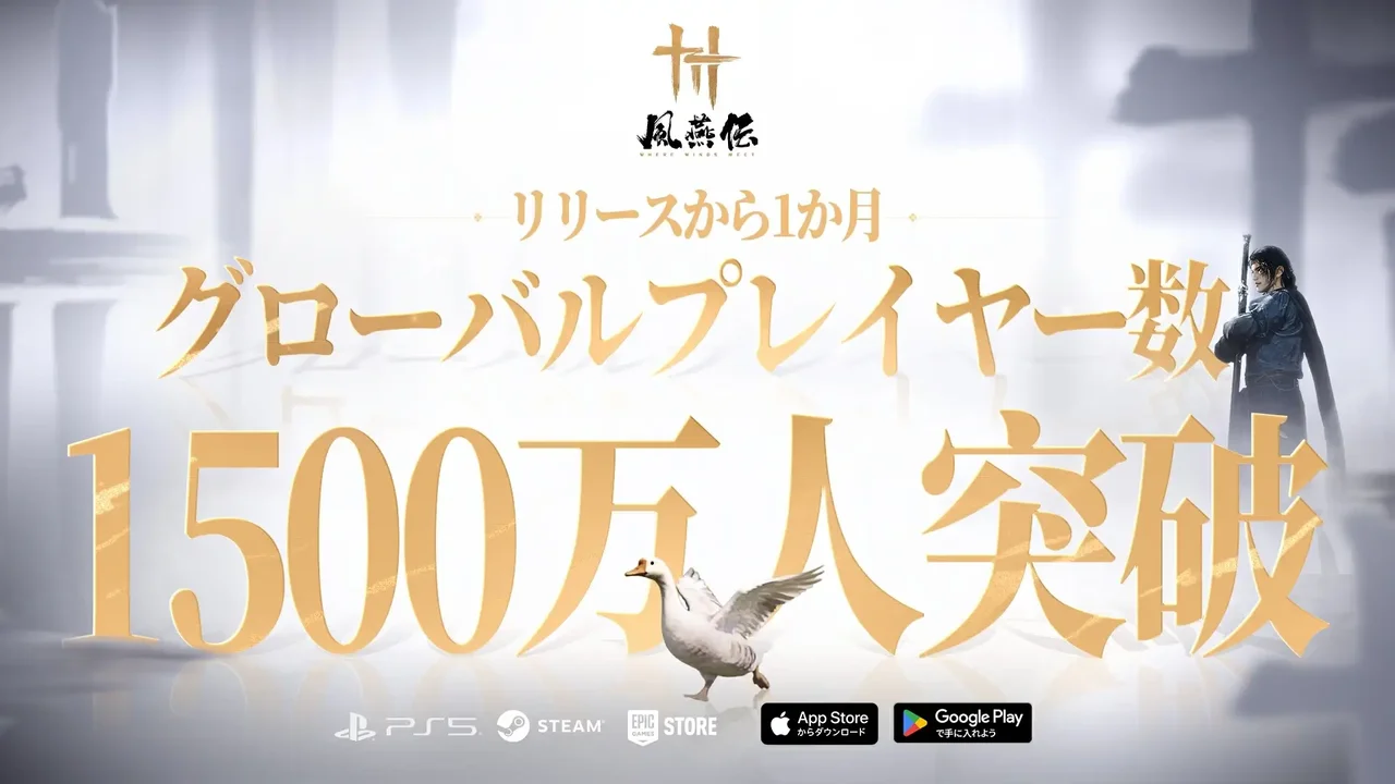 NetEase Gamesは、『風燕伝:Where Winds Meet』の全世界累計プレイヤー数1,500万人を突破したことを発表しました。