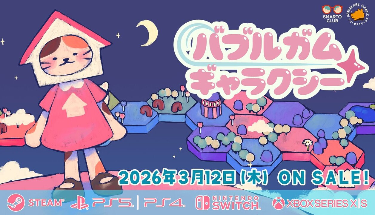 Astrolabe Games は、チリのSmarto Club が開発したカジュアル系銀河再建ゲーム『Bubblegum Galaxy(バブルガム ギャラクシー)』を2026年3月12日にリリースすることを発表しました。対応プラットフォームは、PlayStation 5、PlayStation 4、ニンテンドースイッチ、Xbox Series X|Sおよび PC。