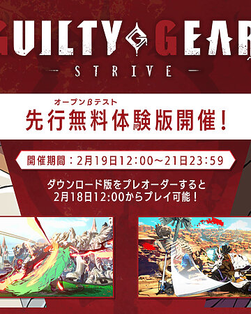 『GUILTY GEAR -STRIVE-』のオープンβテストが、2月19日(金)から2月21日(日)までの3日間、無料で実施されることが発表されました。 na