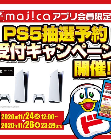 ドン・キホーテは、majicaアプリ限定でPS5本体の抽選予約受付を11月24日12時に開始することを明らかにしました。